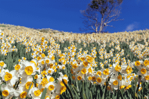 数百万本の水仙が美しい花を咲かせます。