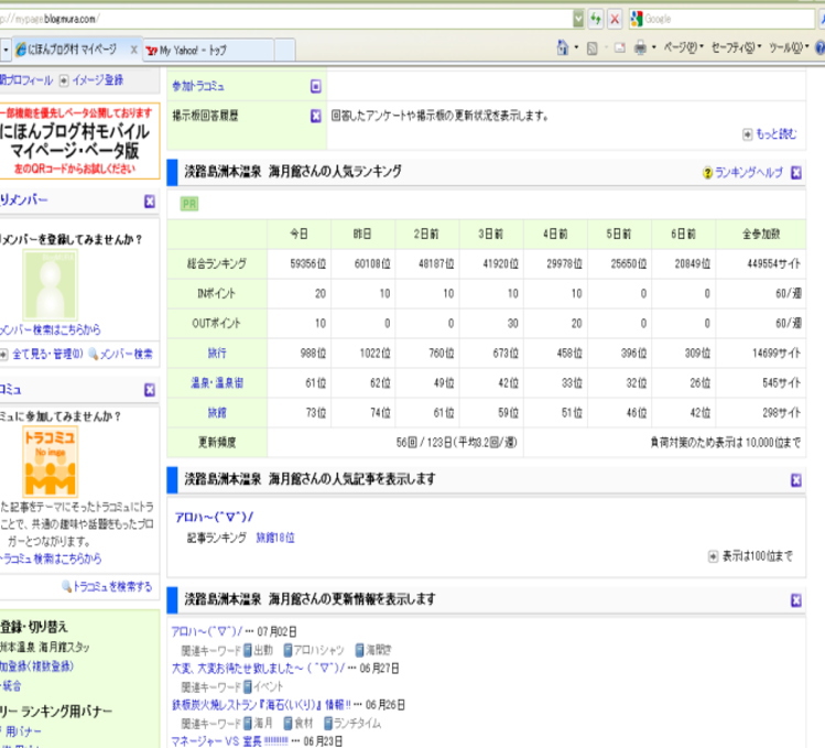 実はブログの人気ランキングを温泉宿で競っているのです。