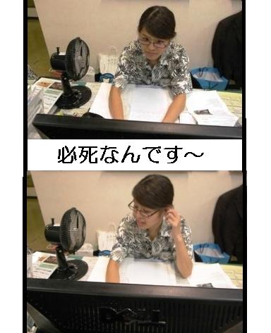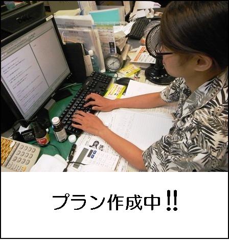 室長が出張中に、室長のデスクで新プランを必死に考えている村上さん