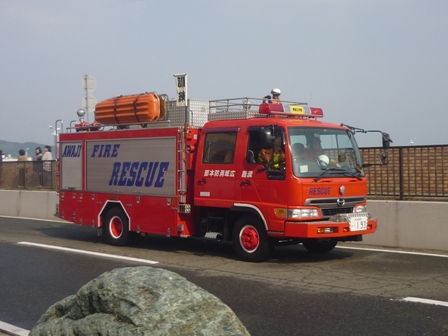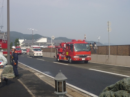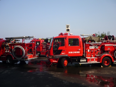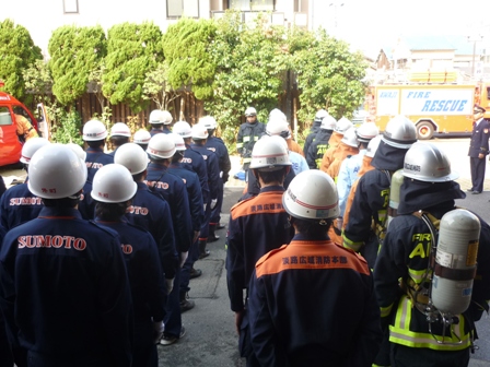 当館で12日、洲本消防署と洲本市消防団の合同消防訓練が行われました