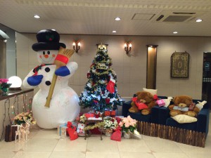 正面玄関から入ると、雪だるまさんとクマさんがお出迎えしております