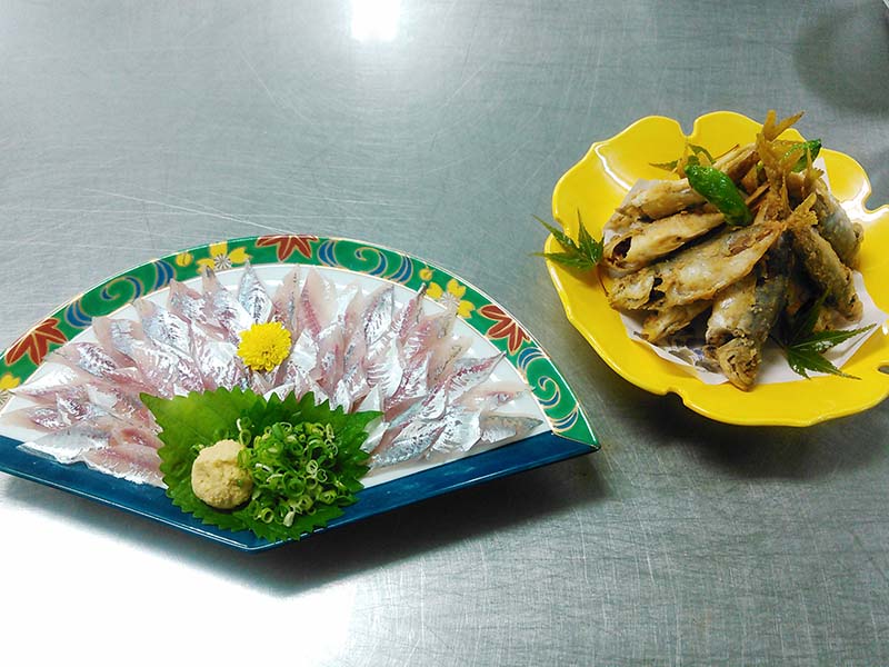 写真は今日釣ってきたアジをお刺身と唐揚げで調理したものです!