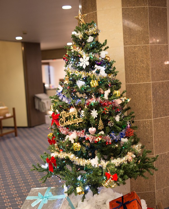 海月館でも12月に入って和風の温泉旅館ですが、若手スタッフを中心にロビーをちょっぴりクリスマス仕様に飾り付け致しました。