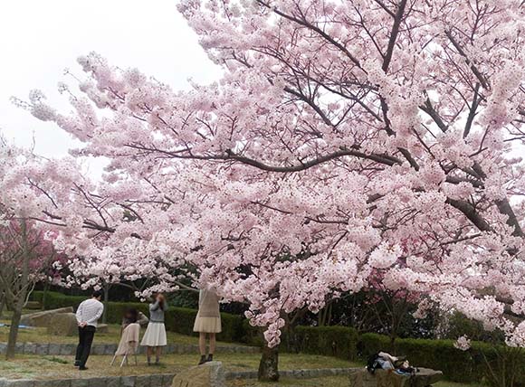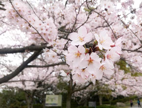 森林浴や四季の花々など年中通して楽しめる人気の公園ですが、桜の時期にはさらに島内外から人々がつめかけます。
