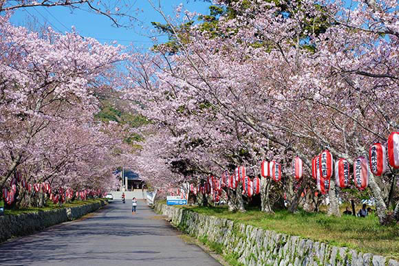 桜の木々が並ぶ参道は南あわじの桜の名所として知られています。
