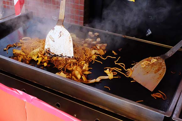 立派な屋台が組み上げられた焼きそばコーナーでは