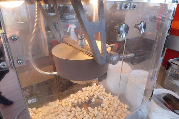 炒られる前のコーンを入れた釜が熱されるとポンポンと音を立てながら
