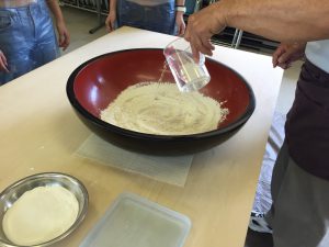 We made buckwheat noodles from buckwheat grown in a nearby field.
