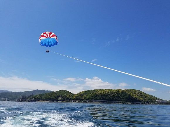 隣のSEAMOONRESORTでは、パラセーリングやジェットボートなど水着でなくても楽しめるマリンスポーツが体験できます。