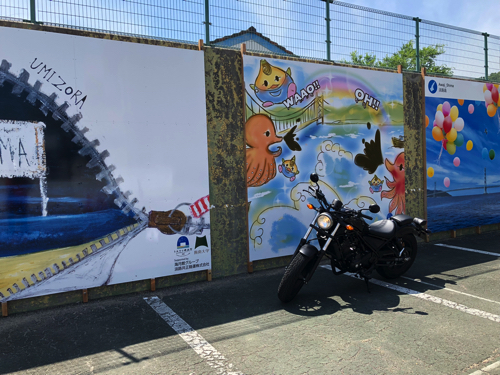 今回のツーリングの最終地点。橋を渡ることはできないのですが海の展望広場からの景色は一見の価値あり。風も心地よく、前回紹介したサンセットラインで夕焼けを見ながら走るまでの時間調整にはちょうどいいかもしれません。