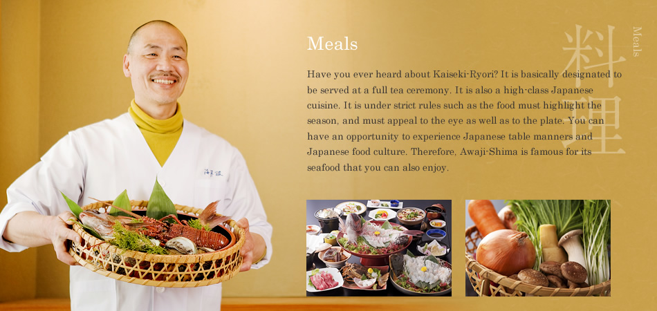 Have you ever heard about Kaiseki-Ryori? It is basically designated to be served at a full tea ceremony. It is also a high-class Japanese cuisine. It is under strict rules such as the food must highlight the season, and must appeal to the eye as well as to the plate. You can have an opportunity to experience Japanese table manners and Japanese food culture. Therefore, Awaji-Shima is famous for its seafood that you can also enjoy.