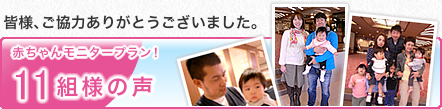 皆様、ご協力ありがとうございました。 赤ちゃんモニタープラン!