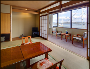 鳴門海月では、どの部屋からも雄大な橋の景色がご覧いただけます。春夏秋冬、朝日・夕映えの素晴らしい景色をたっぷりとご堪能下さい。